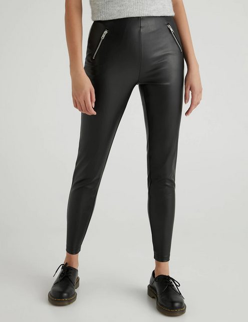 Otra tendencia que lleva pegando fuerte desde hace varias temporadas son las prendas de vinilo, para outfits más rompedores, con los que podemos marcar estilo con cualquier combinación. Un ejemplo son estos pantalones tipo leggin en vinilo negro con bolsillos con cremallera para un toque más loquero. Están fabricados en poliuretano y poliéster y tienen un fit ajustado y muy favorecedor. Cuestan 29,99€ y los puedes adquirir aquí.
