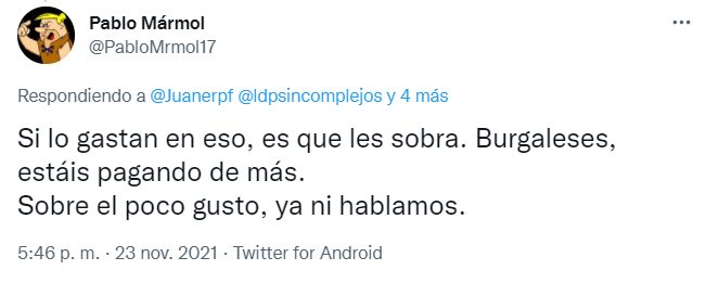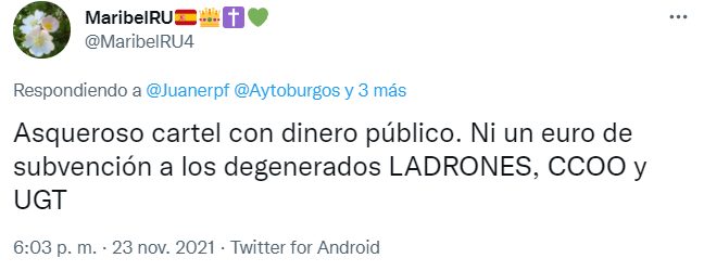 Pronto se ha compartido en Twitter la imagen del cartel, aludiendo al Ayuntamiento de Burgos y al alcalde socialista del a ciudad, Daniel de la Rosa.