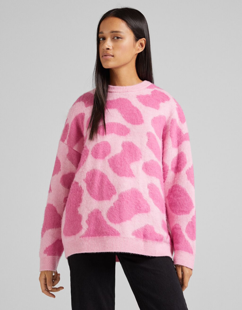 En Bershka, tenemos un buen ejemplo en este jersey en tonos rosas y con estampado animal print que se convertirá en uno de nuestros favoritos. Su precio, de 25,99 euros, se convierte en una gran oportunidad.