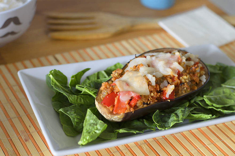 En esta receta se usa una berenjena, 30 gramos de soja texturizada, 340 gramos de tomate frito, 1 cucharada de orégano y 10 gramos de avellanas. Después, se procede a colocar la soja texturizada en remojo durante unos 10 minutos. Luego deben asar las berenjenas, para eso se deben lavar y hacer cortes largos, posteriormente ponerlas a hornear durante unos 30 minutos. En una sartén deben de colocar la soja texturizada con los tomates fritos para que puedan hacer la preparación de la boloñesa vegana.