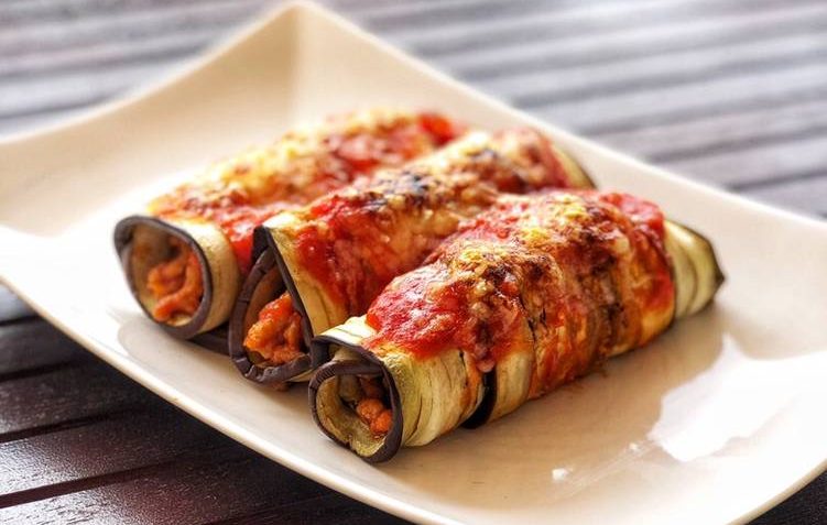 Esta receta de canelones de berenjenas se debe usar ingredientes como una berenjena, cebolla, salsa de tomate, huevo duro. Además, leche, harina, queso rallado, orégano, pimienta, sal y AOVE. Después, deben de cortar en láminas las berenjenas con la ayuda de un pelador, para luego dejarlas con agua y sal. Luego deben de cortar la cebolla y para ponchar por unos 15 minutos con poco de AOVE. Para después añadir el atún, huevo duro cortado y la salsa de tomate. Por último, se añade sal y orégano para que luego se deje cocinar por 5 minutos.