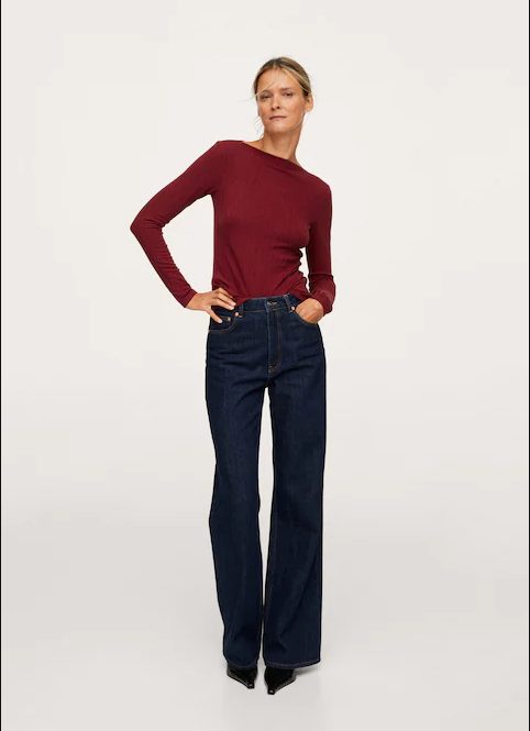 Cuando quieras lucir activa, moderna y muy delicada, busca en las tiendas Mango, la Camiseta manga larga canalé. Muy fácil de combinar, cómoda y elegante para ir a tu oficina y un delicado blazer le dará un look algo formal