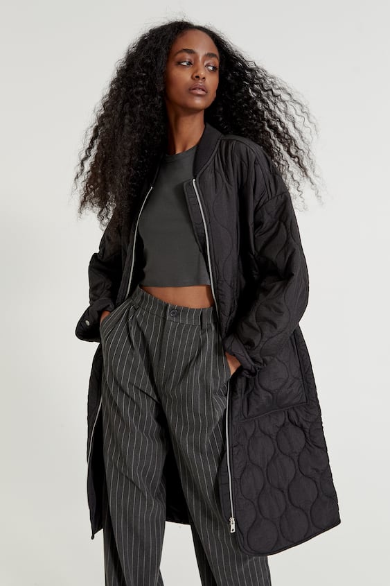 Para que el frio no te arruine tu salida, busca en las tiendas Pull&Bear, este delicado abrigo acolchado cuello tejido. En diseño largo, con su cuello estilo bomber en tejido, con sus mangas largas y bolsillos laterales para resguardar tus manos del frio.