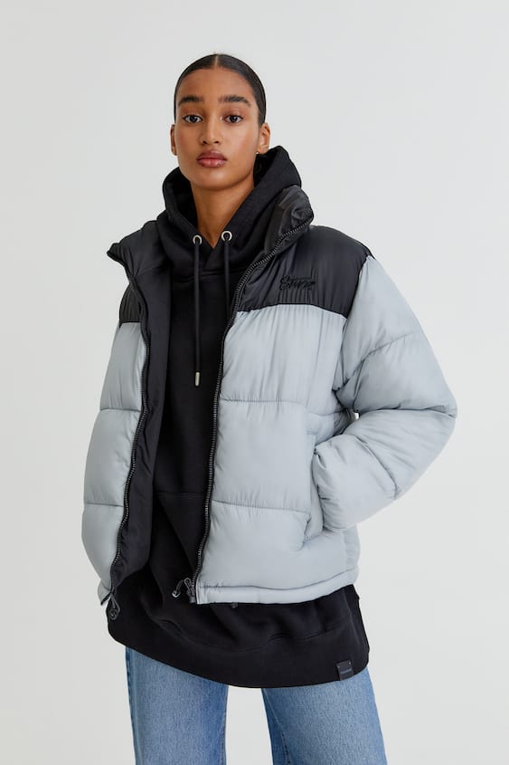 Un diseño algo deportivo, su parte superior destaca el contraste, para mejor abrigo viene con su cuello alto y dos bolsillos para el refugio de tus manos, puedes lucirla abierta o cerrarla con su cierre de cremallera. Pull&Bear la tiene para ti en 35.99 euros.