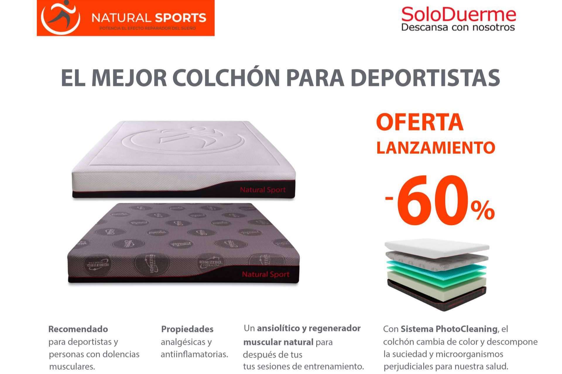 Es un colchón perfecto para deportistas profesionales o aficionados al deporte, así como para personas con dolencias musculares. Podrán disfrutar de un descanso de calidad gracias a su efecto analgésico y antiinflamatorio y además ofrecen una alta higienización con su sistema de limpieza fotocatalítico y muchas más propiedades y materiales altamente innovadores, donde se ha apostado por I+D en toda su composición.