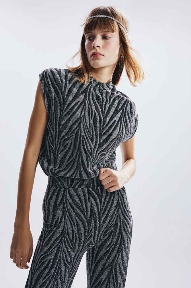 En Sfera, nos brindan la posibilidad de brillar con luz propia con este cuerpo con dicho estampado y pantalón a juego, que podemos conseguir ya por tan solo 21,99 euros.