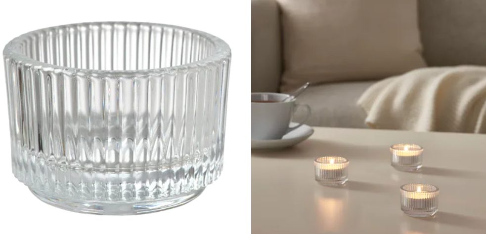 Aunque en Ikea las podemos encontrar a buen precio, en esta ocasión, queremos destacar estos bonitos portavelas de vidrio que te encantarán. Por tan solo 0,25 euros la unidad, querrás llevarlos todos a casa.