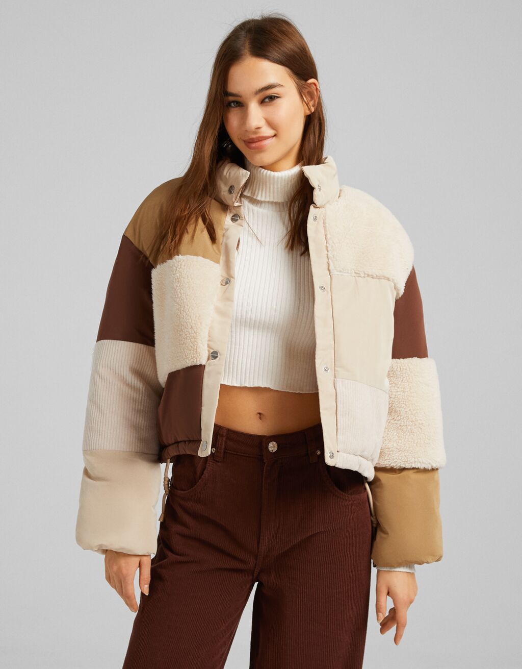Un gran ejemplo lo tenemos en esta cazadora de diseño patchwork, con parte de efecto borrego y una bonita combinación de tonos neutros como el teja, el beige o el camel. Su precio, de solo 45,99 euros, también llama la atención.