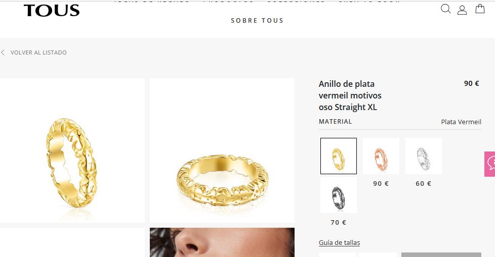 Anillo TOUS que cuenta con unos hermosos osos de plata vermeil. Además, estos tienen los tamaños de 6 mm, ancho de 4,7 mm. La plata con que son fabricado es de de primera ley que está recubierta de oro de 18kt con un espesor de 3 a 5 micras y sin ningún otro metal entre ambos. Entonces, si desean comprar este anillo solo tienen que entrar a Tous por un precio de 90 €.