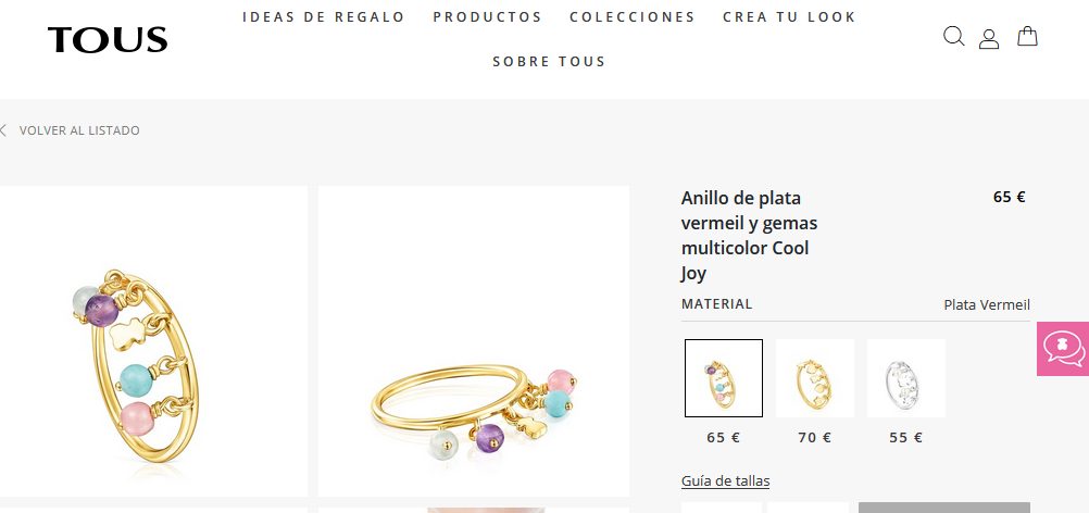 El anillo Cool Joy de plata vermeil cuenta con un hermoso oso de 3,5 mm, amatista, aventurina, howlita y rodocrosita de ø2,5mm. Además, es fabricado con plata de primera ley que está recubierta con oro de 18kt con un espesor de 3 a 5 micras, para darle ese toque de elegancia. Para comprar esta joya solo tienen que entrar a Tous por un precio de 65 €.