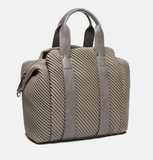 Los bolsos acolchados están en plena tendencia y este de la marca Abbacino es todo un éxito. Se trata de un bolso tipo bowling, de diseño original y atrevido. Está realizado con un material acolchado que le da ese aspecto tan actual. Tiene dos asas de mano, y un asa bandolera que se puede regular y también es extraíble. Tiene un cierre superior con cremallera para mayor seguridad. Cuenta con diferentes compartimentos interiores para una excelente organización. Está disponible en negro y en color topo por 85€. Este es el enlace directo.