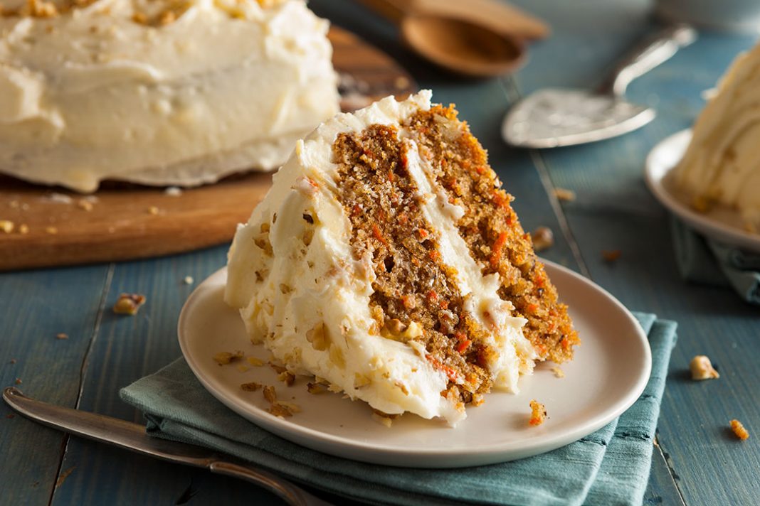 La tarta de zanahoria o carrot cake es uno de los postres más populares de EEUU. Es un delicioso bizcocho con zanahoria rallada, recubierto con buttercream, que ha conseguido traspasar fronteras y conquistar los paladares golosos de todo el mundo. Su sabor es dulce, especiado y con una peculiar textura, suave, densa y muy jugosa. Las zanahorias, además de darle un exquisito sabor, hacen que el pastel tenga un color naranja muy bonito y apetecible.