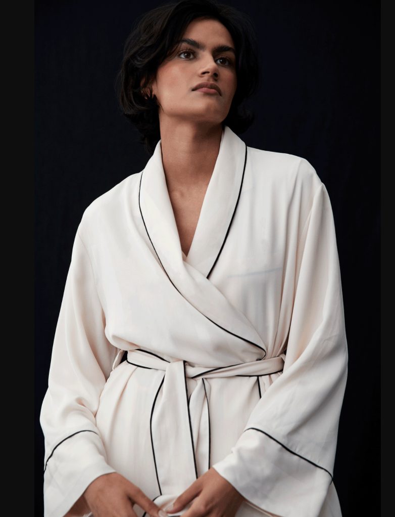 Estar en casa cómodas no está reñido con mantener la elegancia y apostar por prendas que reflejen nuestro buen gusto. En este caso, hemos elegido esta bonita bata satinada de Primark por su sofisticación.