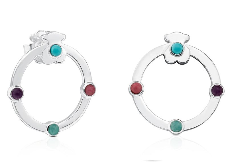 Si buscas unos pendientes de aro más originales, te puedes encontrar con estos pendientes de plata con gemas Super Power de Tous, disponible en color plata por 99 euros. Además, también está disponible en vermeil rosa (rebajado a 107 euros).