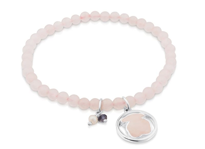 Es un modelo que apuesta por el espíritu romántico de los colores pastel, una pulsera perfecta para añadir un toque de feminidad a tus combinaciones. Se trata de una pulsera elástica de plata de primera ley, con cuarzo rosa, iolita y perla de 3,2 cm; además del motivo de la marca, con un oso de 1,4 cm. Es una pulsera elegante que podrás utilizar y combinar de una manera muy sencilla para formar tus mejores looks.