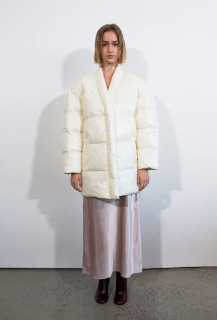Diseñada con escote pico, mangas largas, sus botones ocultos cierras a presión y con bolsillos en su parte delantera de vivo. Su acolchado le da vistosidad y permitirá que te sientas con el confort requerido. Puedes llevártela en color crudo, siendo su precio 59.95 euros.