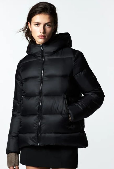 Esta cazadora está confeccionada con relleno térmico ultra suave, que mantiene el calor corporal dentro de la misma. Es bastante ligera fácil de limpiar, bajo asimétrico para darle más estilo. En color negro a un costo de 49.95 euros.