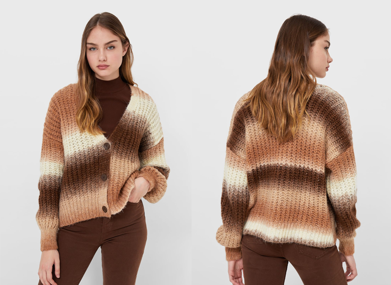 Antes de hablarte del jersey de Stradivarius que se ha convertido en tendencia, tentemos que hacer mención a esta chaqueta tricot degradé. Se encuentra a la venta en un total de tres tonalidades diferentes, teniendo un precio final de 25,99 euros.