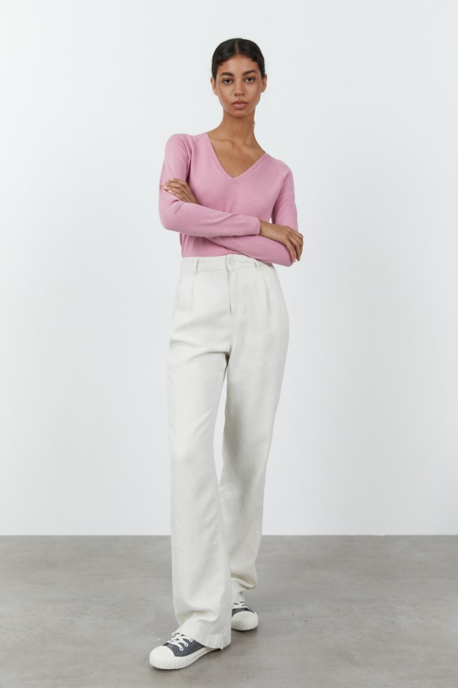 El Jersey pico viscosa, es una prenda delicada, algo casual. Su cuello pico permitirá lucir cualquiera de tus collares junto tus delicados pendientes, fácil de acompañar con la cazadora de tu preferencia o con un chaleco acolchado harán excelente contraste.