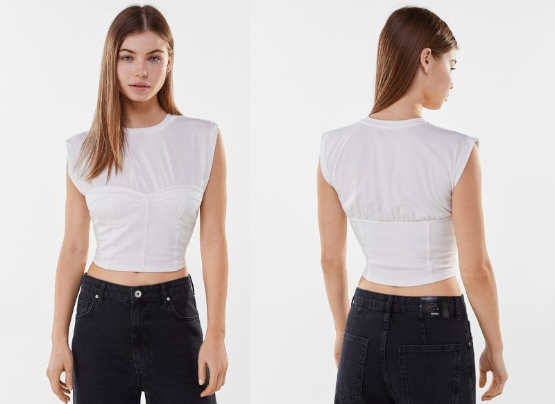 Entre las opciones disponibles tenemos que destacar esta camiseta sin mangas corset, disponible en color crudo y negro por tan solo 9,59 euros (PVP: 15,99 euros). Es una prenda corta sin mangas que forma parte de la colección Join Life de la marca. Esto se debe a que se encuentra confeccionada con 100% algodón orgánico.