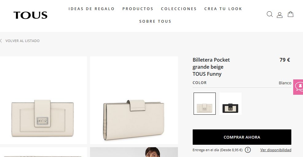 Es una hermosa billetera Pocket grande en color beige de piel sintética con textura sraffiana combinada con piel sintética lisa. Además, posee un cierre con botón a presión y un bolsillo exterior abierto para tarjetas. En la parte interior tiene un bolsillo con cremallera para monedas, un bolsillo grande para billetes, 8 ranuras para tarjetas. inclusive, 2 compartimentos para diferentes pertenencias. Entonces, si lo desean comprar solo deben entrar a Tous por 79 €.