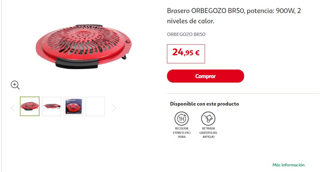El Brasero ORBEGOZO BR50, con potencia de 900 W y dos niveles de calor, combina lo actual con lo clásico, puedes elegir sus opciones de potencia con las cuales mantendrás el calor que requieras mantener. A un costo de solo 24.95 euros y la consigues en cualquiera de las tiendas de Alcampo.