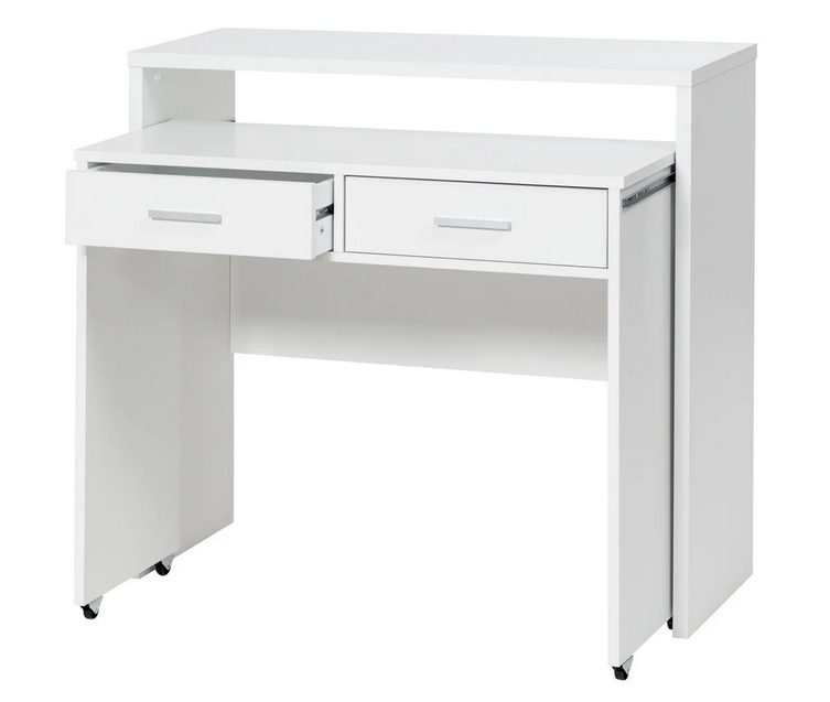 La consola escritorio extensible de Lidl ha conquistado a muchos clientes por su utilidad, su diseño y su estupendo precio. Es un práctico escritorio con una bandeja extensible, ideal para espacios pequeños, o para colocar en el recibidor. Tiene un revestimiento de resina de melamina con un acabado en blanco, fácil de limpiar y resistente a arañazos. Cuenta con varios cajones con rieles de metal y herrajes de gran calidad, y las patas incorporan unas pequeñas ruedas para facilitar el transporte. Tiene unas medidas de 98,5 x 91 x 36,2 cm. y cuesta 49,99€.