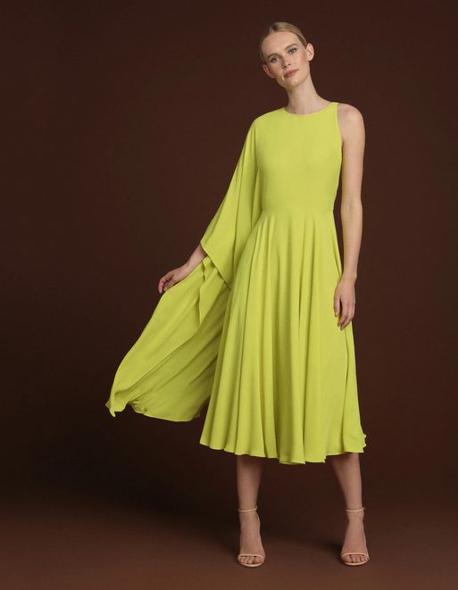 Los vestidos fluidos son siempre un acierto en ocasiones especiales. La marca Woman Fiesta propone este diseño asimétrico absolutamente especial en todos los aspectos. Es de longitud midi, con un lado sin manga y el otro con efecto de capa cubriendo el brazo. El cuerpo es liso y la falda tiene mucho vuelo y es muy vaporosa. La capa es ligera y con mucho movimiento, y en conjunto es un vestido original, elegante y a la vez cómodo. Además, destaca su original y favorecedor color lima. Ahora en El Corte Inglés tiene una rebaja del 50% y su precio es de 98,99€. Aquí te dejamos el enlace.