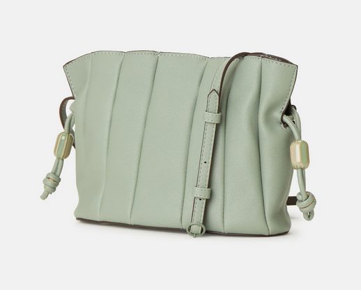 Los bolsos acolchados están de moda, y la marca Jo & Mr. Joe se hace eco de la tendencia con esta bandolera con tejido acolchado 100% poliéster en un bonito tono verde agua. Cierra con cremallera e imán y tiene forma de ondas en la parte superior. El asa es larga y regulable y dentro cuenta con dos compartimentos, uno con cremallera. Mide 19 (alto) x 25 (largo) x 10 (ancho) cm y lo puedes conseguir en El Corte Inglés por un precio de 45,99€. Este es el enlace.