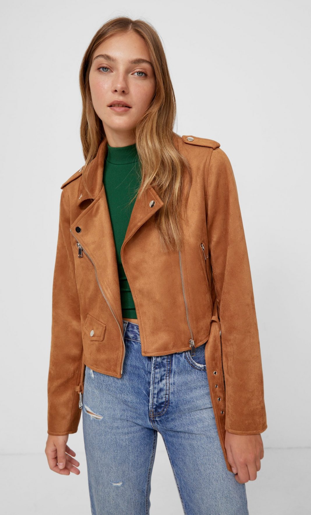 3Cazadora biker efecto ante con cinturón Stradivarius