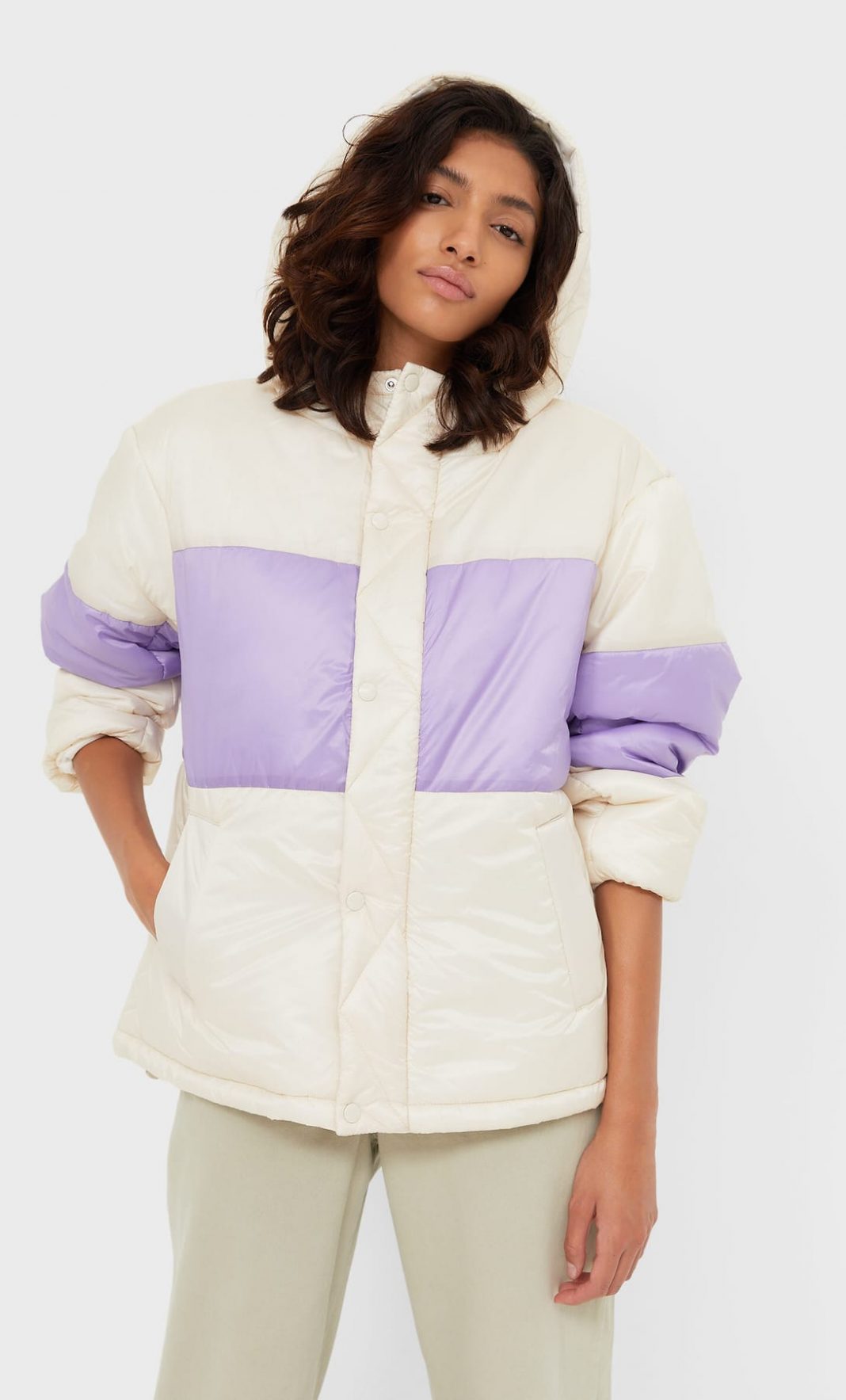 No te quedes en casa ninguna tarde porque el frio aprieta, busca en las tienda Stradivarius la Cazadora color block. Te sentirás bien abrigada y puedes combinarla con mucha facilidad.