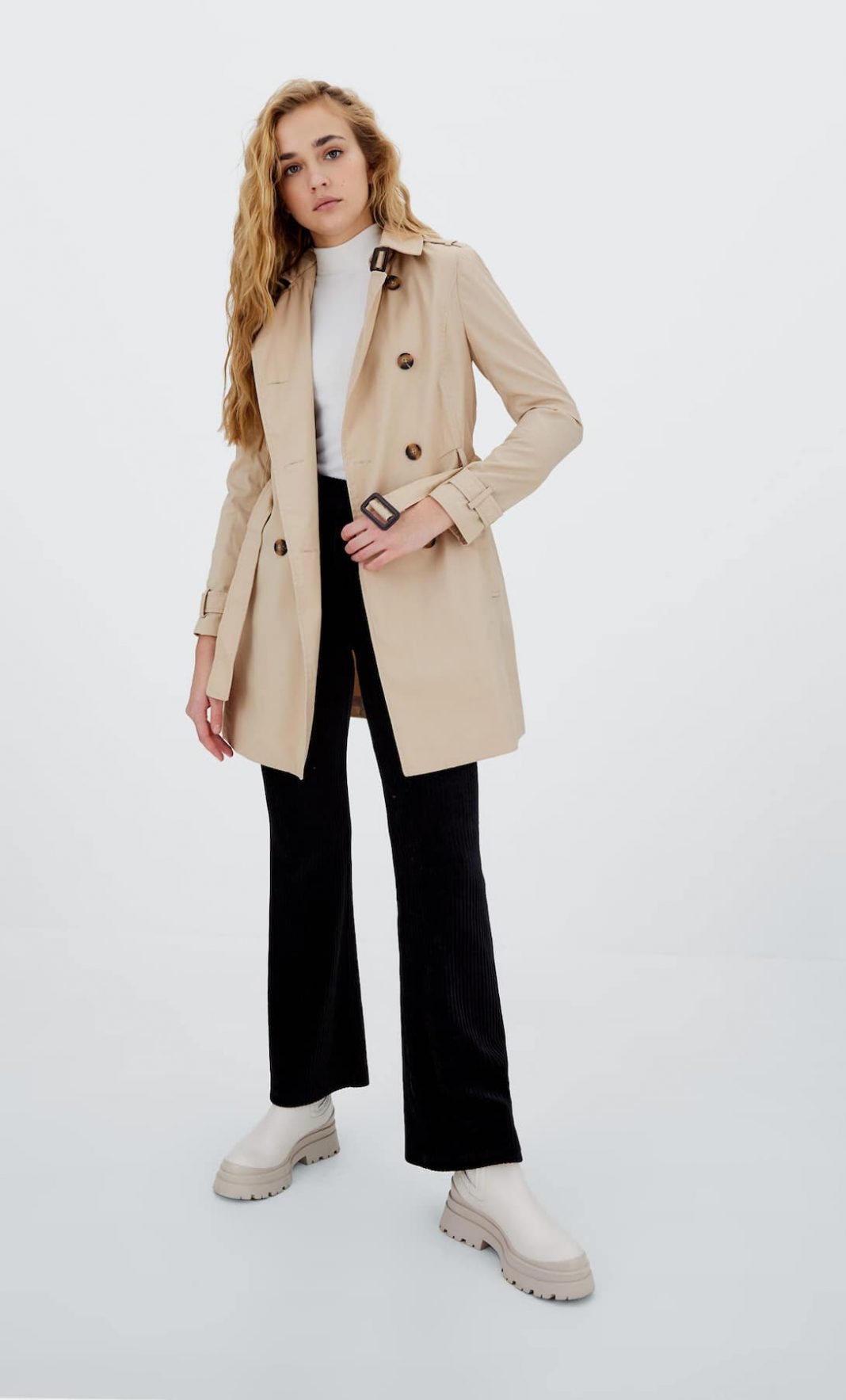 No podrás zafarte de tus reuniones en invierno, por lo que Stradivarius tiene en sus tiendas el Trench corto, para que modeles tu delicado look ejecutivo. Cierra cruzado con delicados botones que hacen contraste. Búscalo en sus diversos colores y su precio de solo 29,99 euros.