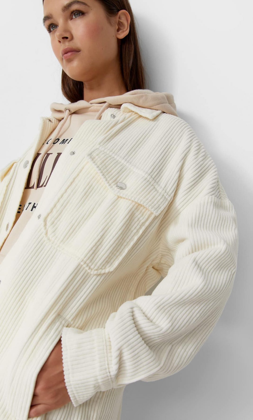 Cualquier prenda de vestir confeccionada en pana, es sinónimo de elegancia y confort. Siguiendo esa línea, Stradivarius tiene en todas sus tiendas, la Sobrecamisa pana. Una prenda de muy fácil combinación que te abrigara cuando desees lucir tus delicados jersey.