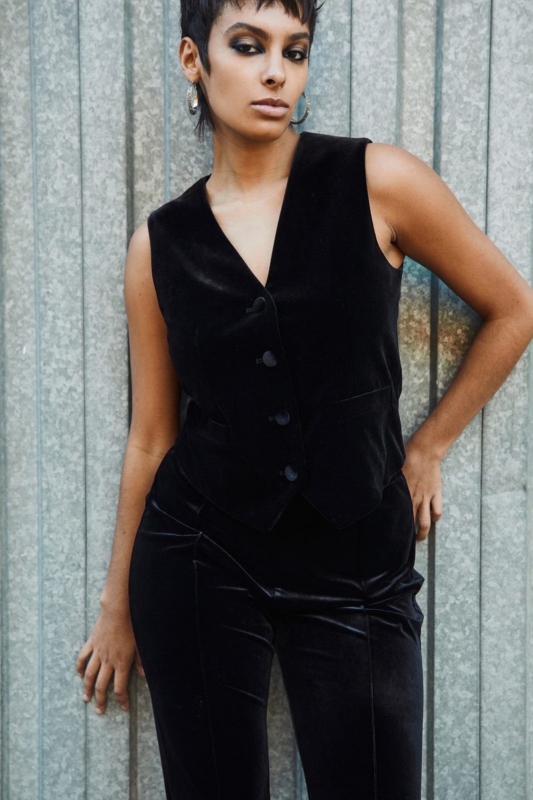En color negro liso, cierra en su parte frontal con botones. Busca una delicada cadena para destacar el escote pico de este delicado chaleco. Podrás modelarlo cualquier día del año y puedes hacerlo tuyo por solo 19.99 euros.