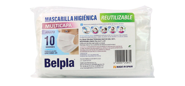 También se han analizado las mascarillas reutilizables, que son mucho más respetuosas con el medio ambiente y al final son más económicas. Destacan las que se venden en Consum, y están clasificadas como Compra Maestra. Están fabricadas con cuatro capas de tejido que cumplen con la normativa UNE 0065. Ofrece una excelente respetabilidad y después de 5 lavados mantiene un nivel de filtración de 86%. Cada unidad cuesta un euro pero teniendo en cuenta que se puede utilizar hasta 5 veces, el precio real es de 0,20 euros.