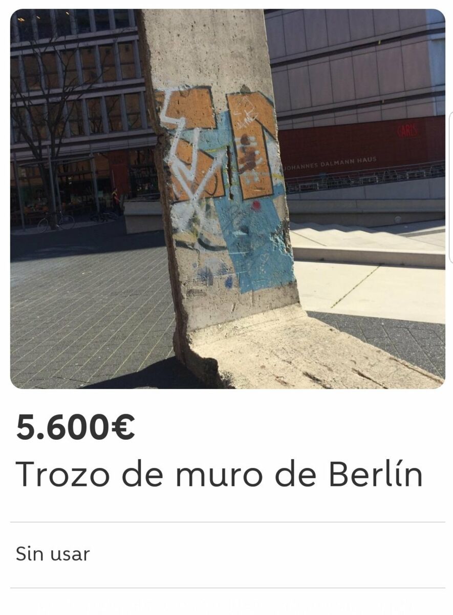 Cuando leemos la descripción del muro es imposible imaginar que cuando fue la caída del mismo, se pudieron extraer restos para conservarlos. Es verdad que muchas personas lograron llevarse a casa algunas piedras y bloques pequeños, pero el “trozo” monumental que ofrecen por 5.600 euros en Wallapop nos hace dudar un poco. No solo por el tamaño, sino porque nada afirma que ese bloque correspondió al muro alemán. Ahora, lo que más se rescata del anuncio es su descripción: “sin usar”.