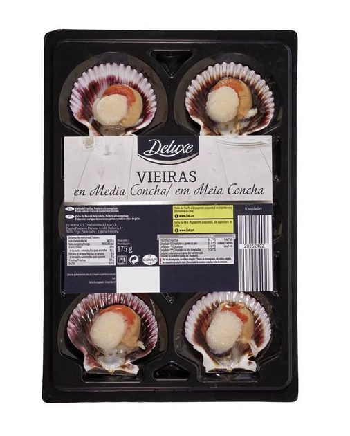 Esta semana en Lidl puedes comprar algunos productos gourmet, tanto frescos como congelados. En la sección de frescos puedes encontrar estas vieiras del Pacífico que se comercializan en media concha, listas para preparar. Es un producto fresco y de gran calidad, perfecto para un entrante de lujo en una cena especial con amigos o familia. Se venden en paquetes de cuatro unidades y cuesta 3,99€.