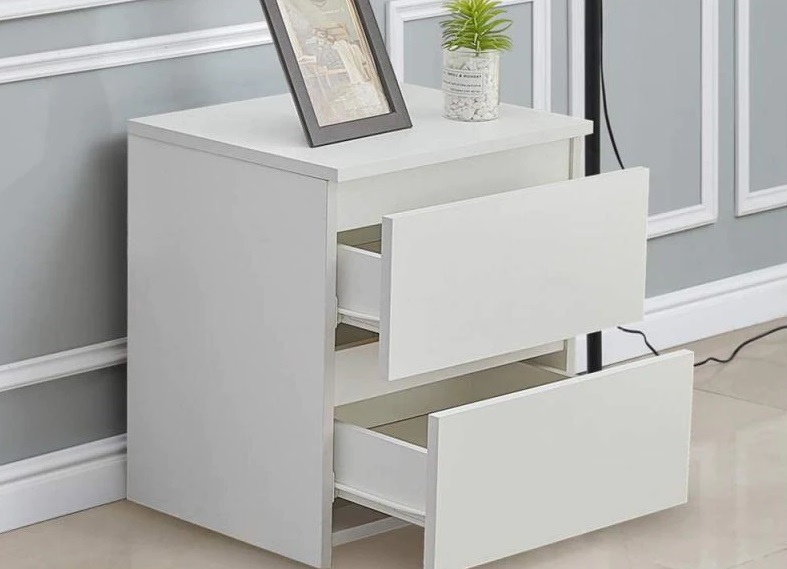 De líneas rectas y muy sencillo además de contar con dos cajones. Por lo que combinará con cualquier estilo decorativo que se precie. En sus cajones podrás guardar todo lo que necesitas para tenerlo a mano. Si la quieres, aquí mismo la puedes comprar.