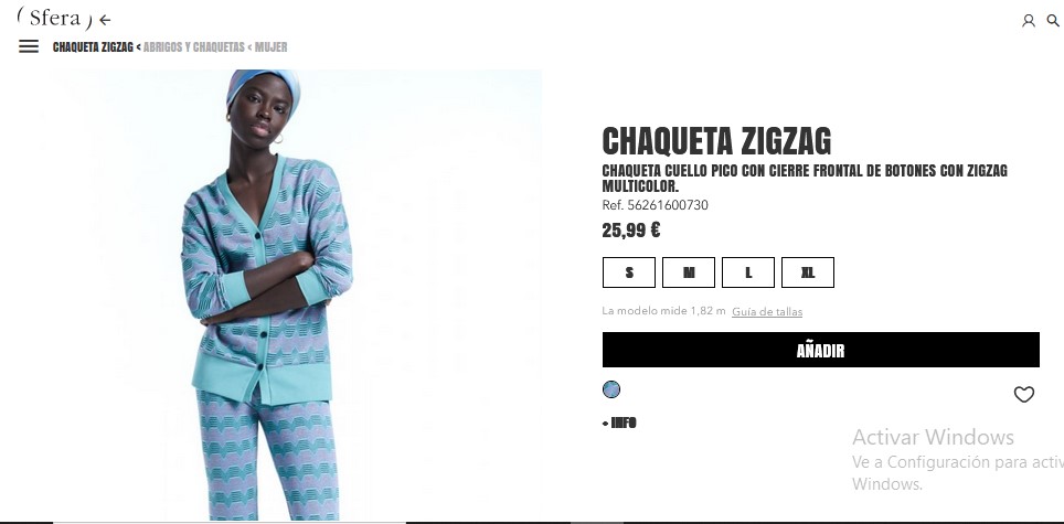 Es una chaqueta cuello pico con cierre frontal que cuenta con un estilo perfecto para que pueda ser usada en esta temporada de invierno. Además, tiene unos botones con Zigzag multicolor para generar ese look que una mujer busca en una prenda. Por lo que, no puede dejar de comprarla en esta oferta. Para que la puedan comprar tienen que entrar a Sfera por un precio de 25,99 €.