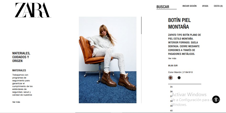 Son unos zapatos tipo botín plano de piel estilo montaña, por lo que son perfectos de usar en esta temporada de invierno. En la parte interior es completamente forrado para ofrecer esa comodidad con la suela dentada. Además, tiene un cierre mediante cordones a través de pasadores metálicos. Si la desean comprar solo tienen que entrar a Zara por un precio de 89,95 EUR.