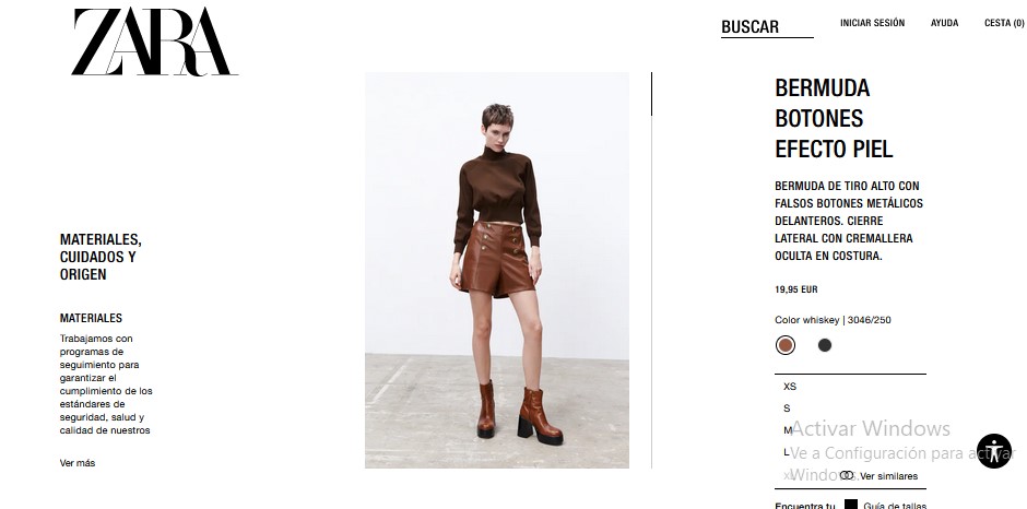Es una hermosa bermuda de tiro alto con falsos botones metálicos delanteros para que sea super cómoda de usar. Además, cuenta con un cierre lateral con cremallera oculta en costura para que tengan ese estilo perfecto. Inclusive, tiene ese efecto piel para ofrecer una elegancia cuando la usen con otra prenda. Entonces, para que la puedan comprar solo deben entrar a Zara por un precio de 19,95 EUR.