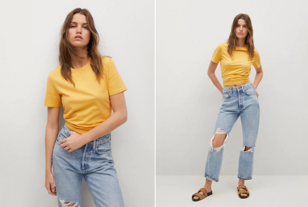 3En mostaza y algodón reciclado, una camiseta básica de Mango que debes tener