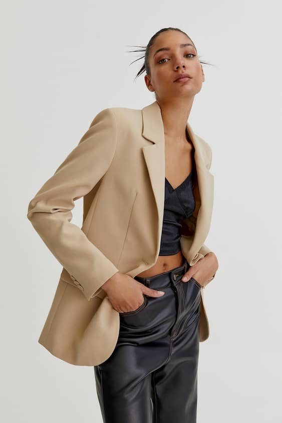 Demuestra todo tu estilo portando este delicado Blazer masculina cuello solapa, diseñado para la mujer que le gusta portar su look ejecutivo, resaltando toda su elegancia y porte femenino. Búscalo en alguna de las tiendas Pull&Bear en sus tres colores, camello, negro y frambuesa.