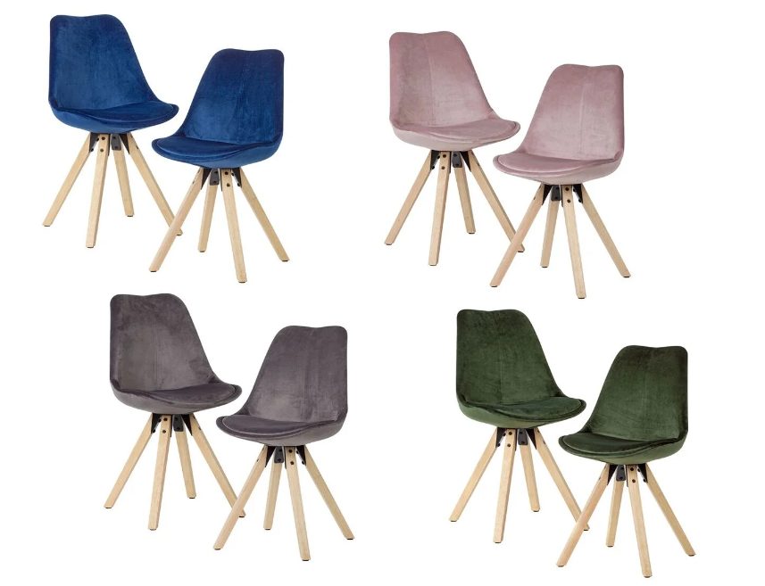 Otra propuesta para el comedor de Lidl es este modelo con cuatro elegantes patas de madera protegidas con almohadillas antideslizantes y asiento tapizado en terciopelo. Se trata de un modelo de inspiración nórdica y minimalista que puede encajar fácilmente en cualquier ambiente. Se vende en packs de dos sillas por 94,99€, por lo que cada unidad sale a 47,50€. Soporta hasta 110 kg y la altura del asiento es de unos 51 cm.