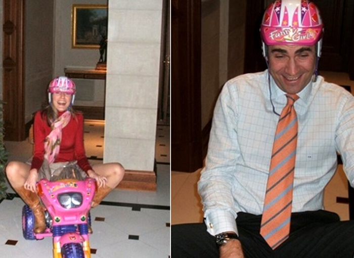 Aprovecharon el regalo a algún familiar para colocarse el asco y subirse a este juguete, que les hizo pasar un buen rato de diversión. Esta fotografía sorprendió dado que para muchos fue un claro fallo de protocolo.