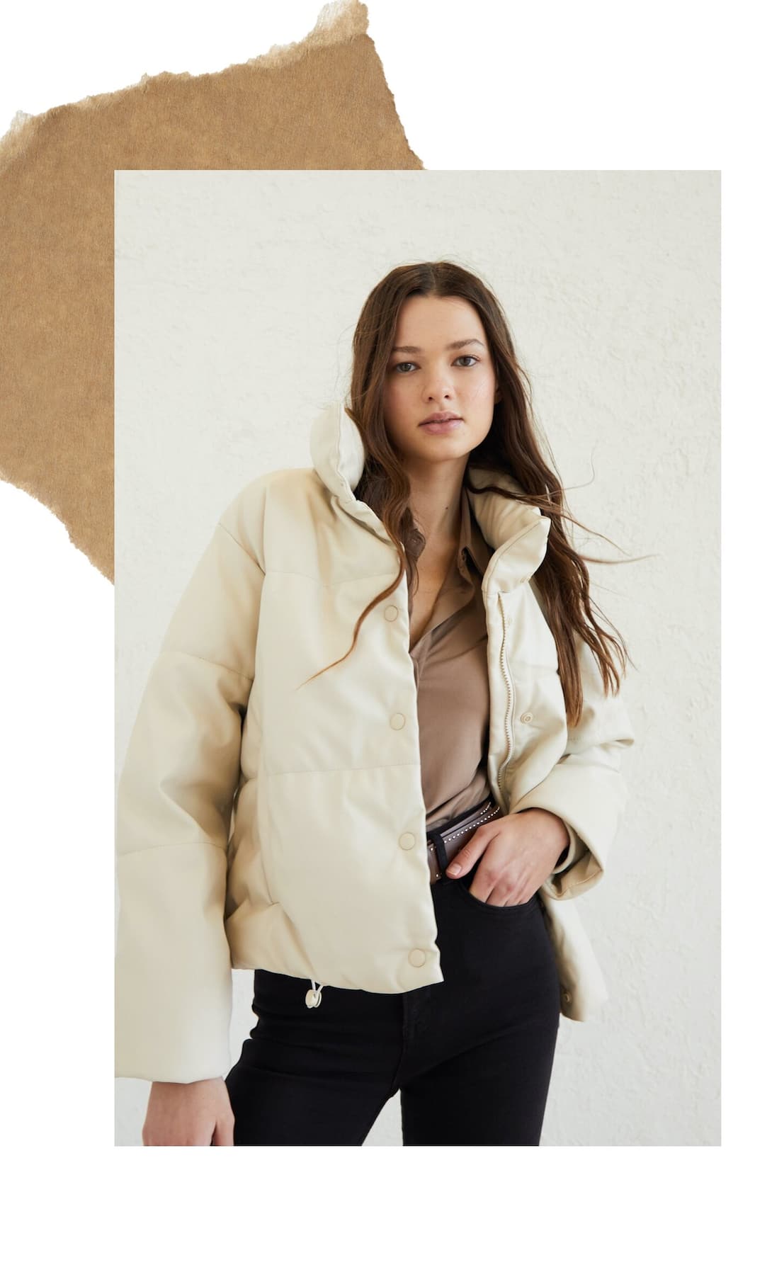 Solemos relacionar las chaquetas y cazadoras estilo puffy con looks casuals y desenfadados. Sin embargo, desde Stradivarius se han propuesto darle a esto una vuelta convirtiendo esta prenda en la más deseada por su elegante efecto piel. También en color piedra, la tenemos disponible por solo 39,99 euros.