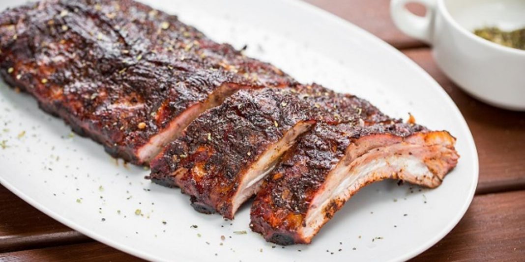 El primer paso de esta receta de arroz con costillas es adobar la carne, cosa que haremos 24 horas antes de cocinar el arroz. De esta forma la receta tendrá muchísimo más sabor. Para hacer el adobo tomaremos una fuente grande donde vamos a mezclar pimentón dulce (25 gramos), tres cucharadas de orégano, 2 dientes de ajo bien picados, un chorro de aceite de oliva y otro de ajo. Mezclamos bien los ingredientes con un tenedor y colocamos las costillas troceadas en cuadrados, bañándolas bien en la salsa que acabamos de preparar. Cubrimos la fuente con un poco de papel film y dejamos que repose en la nevera hasta el día siguiente.