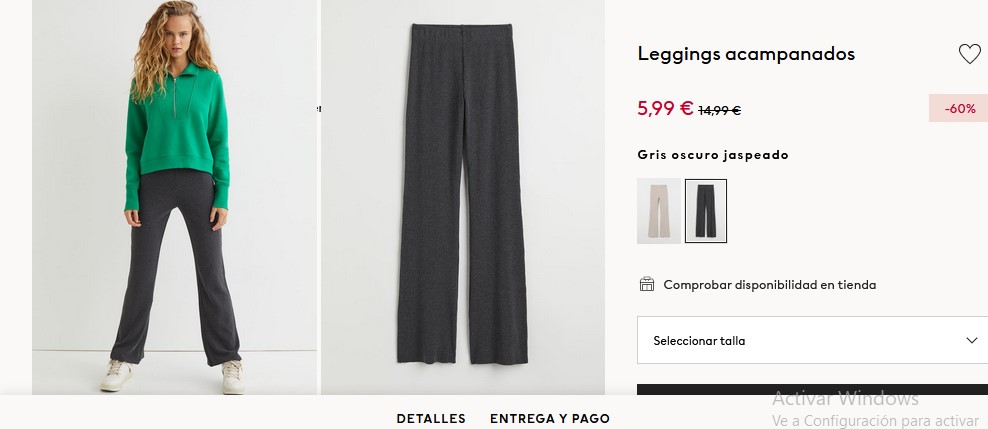 Es un hermoso leggins preferidos por las mujeres, dado que es en punto de canalé. Cuenta con un modelo de cintura estándar con elástico revestido para darle ese toque a la prenda. Además, tiene unas perneras acampanadas para ofrecer esa elegancia que una persona busca en una prenda de vestir. Entonces, si lo desean comprar solo tienen que entrar a H&M por un precio de 5,99 €.