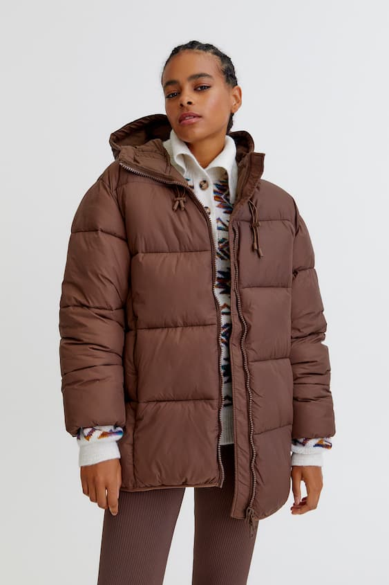 Iniciamos el recorrido por una de las tiendas Pull&Bear y nos encontramos la Cazadora larga acolchada. Una prenda ideal para una noche de invierno, que te protegerá de las bajas temperatura, destacando toda tu elegancia y estilo.