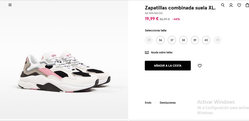 Es otra de las zapatillas en color blanco preferidas por las personas. Dado que, estas ofrecen un estilo perfecto porque esta combinada con piezas en negro, gris y rosa. Inclusive, cuenta con una suela XL ligera para ofrecer una mejor comodidad en todo momento. Las personas interesadas en comprarla solo tienen que entrar a Bershka por un precio de 19,99 €.